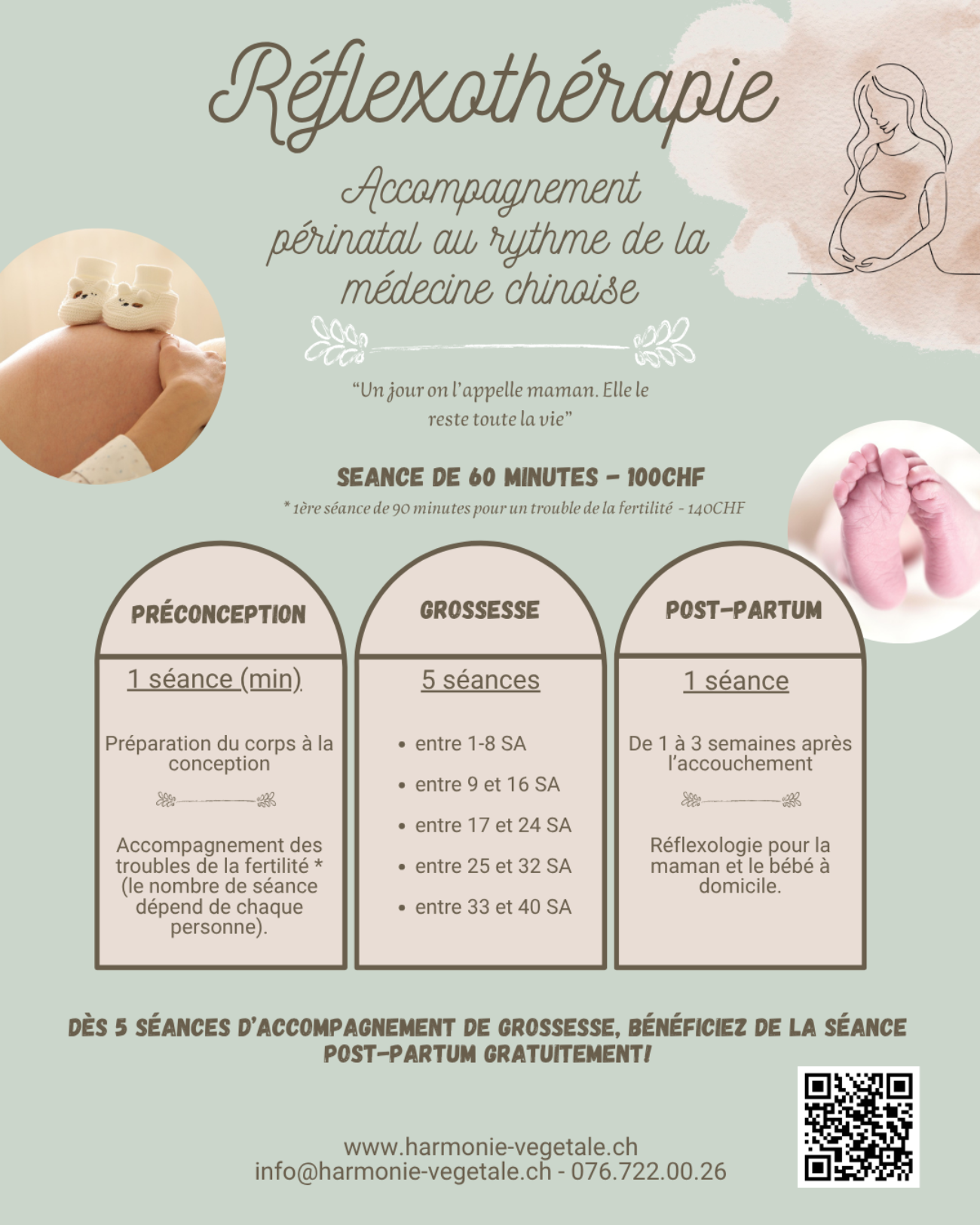 Dès 5 séances de suivi de grossesse au cabinet, bénéficiez de la séance post-partum à domicile gratuitement !